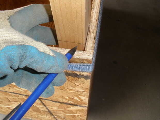 3. luego marque todas las ubicaciones de los tornillos en los paneles de OSB y orificios del mismo tamaño que el diámetro del tornillo. foto 3 y 4