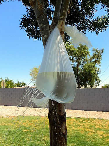 -Llenar la bolsa con agua y haga un nudo para cerrarlo.