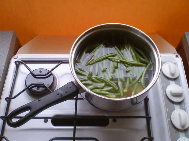 Ahora top y las judías para quitar los extremos antes de ésos en la misma sartén echar la cola.