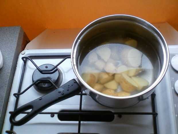 Después de diez minutos o así pues, se deben cocinar las papas y puede drenar el pan.