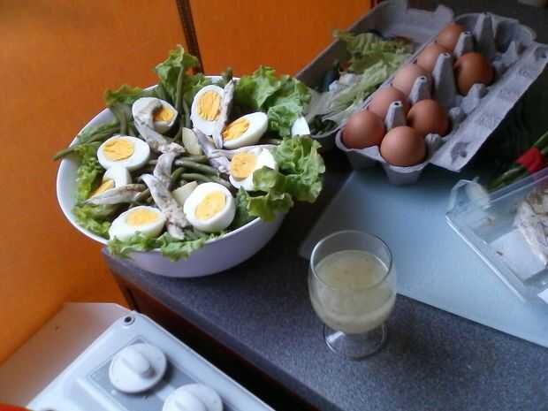 Ahora llegamos a lo que, para mí, define la Ensalada Nicoise y anchoas puesto grueso en la parte superior junto con aceitunas.