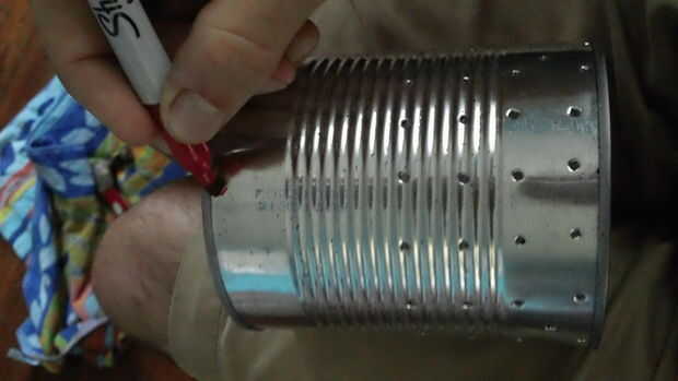 Primero, marca de un cuadrado de 2 "x 2" en la mitad superior de la lata.