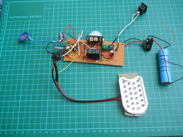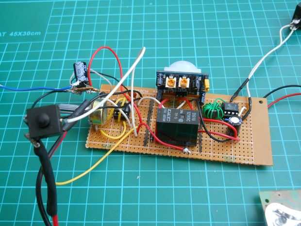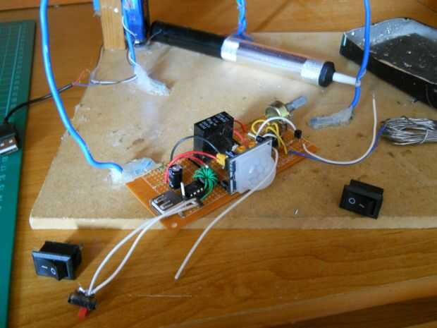 Usé un interruptor ON-OFF-ON para ajustar la luz y el sonido. Esta conectado al pin de salida positiva, al ponente y a la luz. Conecte a tierra todo.
