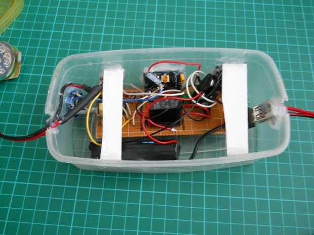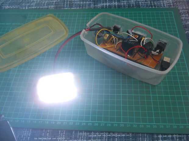 He utilizado pegamento caliente para fijar el circuito. Cable del panel solar y el LED de cable necesita para salir de la caja