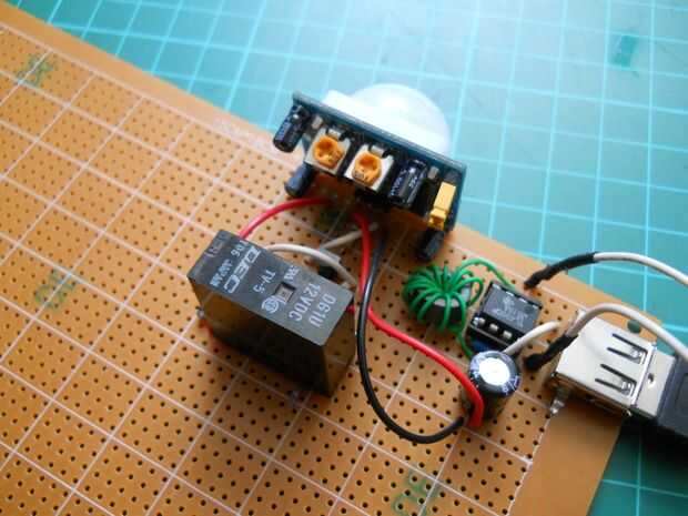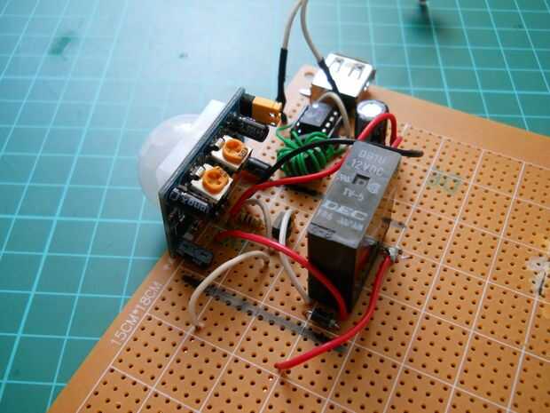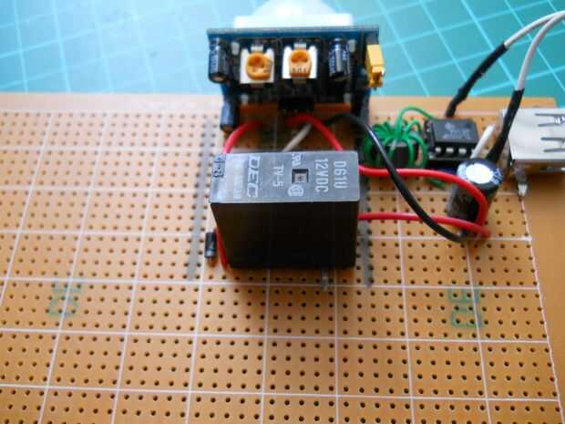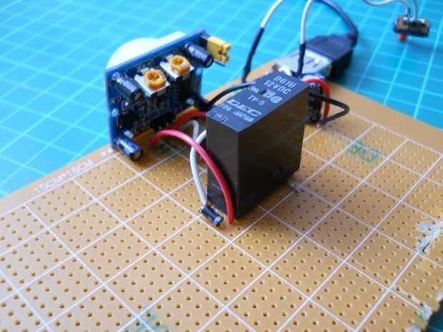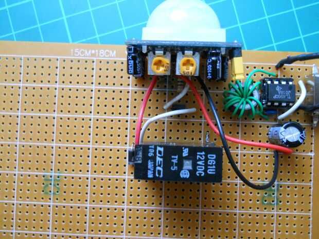 Suelde el relé para el emisor de los BC547 y el otro pin a la patilla positiva de 9v. Si está hecho se puede probar el circuito. Conectar la batería a él, y si mueve usted puede oír un "clic" que significa que el relé funciona. El relé tiene dos pines para el interruptor en el interior, aquí soldar el pin positivo de 9 voltios y el otro pin va a ser conectado al tablero de LED y el oscilliator. Ahora si el sensor detecta movimiento del relé será swiched ON.