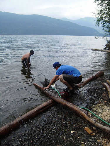 Coloque la bomba grande en el agua con un filtro o podría y se Aspire para arriba la arena. Si esto sucede que se rompe la bomba.