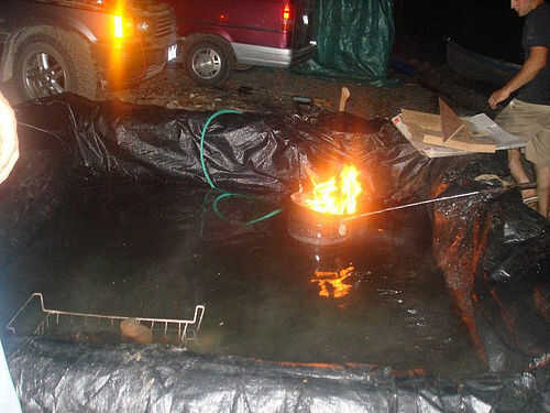 Coloque las rocas en cestas en el fuego que los súbditos han preparado. Después de 15 minutos las rocas deben ser lo suficientemente calientes como para calentar agua.