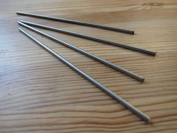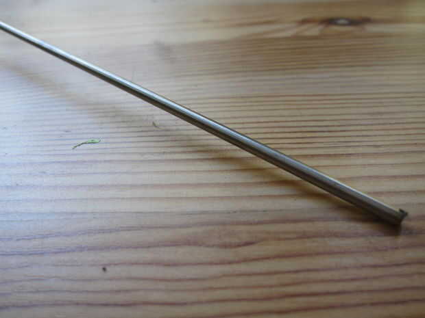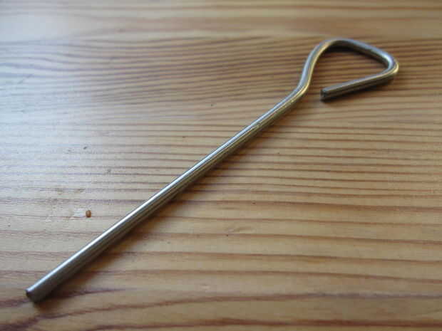 Cortar la varilla de acero inoxidable de 1/8" en tiras de 6" 4. En aproximadamente 3" por la pieza, comienza la curva triangular para el juego. Después de algunas maniobras con los alicates con bloqueador y un par de alicates de punta, pude conseguirlo doblado en forma. Puede ser un poco complicado al principio pero usted conseguirá la caída de la misma.