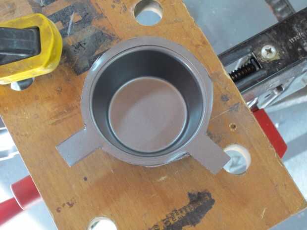 Trazar las plantillas (archivo PDF de impresión) sobre los bollitos con un marcador permanente. Organizar las plantillas en la lata del mollete para que tenga espacio para los tres cortes. Cortar las latas individuales muffin, tan precisas como sea posible, usando una combinación de recortes de jigsaw y la lata ("u o" está bien - he preferido las tijeras). Utilice las fotos de referencia.