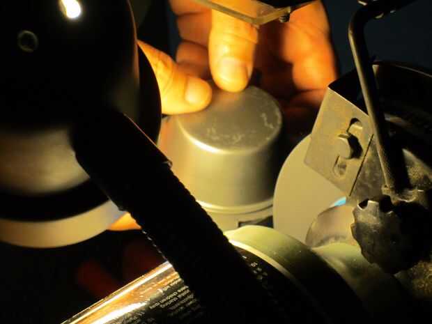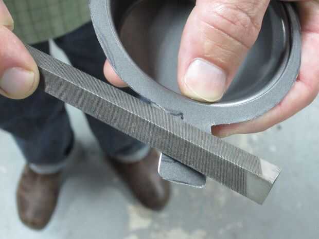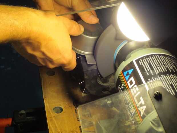 Iniciar brevemente utilizando un grueso archivo a archivo por todos los filos y las esquinas. Cambiar al uso de la amoladora de banco, a partir del disco grueso y mover sobre el disco fino. También puede redondear los bordes de las pestañas que están sobresaliendo del bote usando la amoladora de banco. Por último, utilice una lima fina para perfeccionar las latas.
