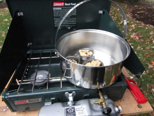 el mini Cupcake maker es ideal para hogares pequeños.  Aquí está mi receta para hacer mini magdalenas para el desayuno.mezcla para molletes de 1/4 de taza = 1 porciónbatidores de huevo 1/8 taza1/8 taza de agua1/8 de taza de salvado2 o 3 fechasAceite