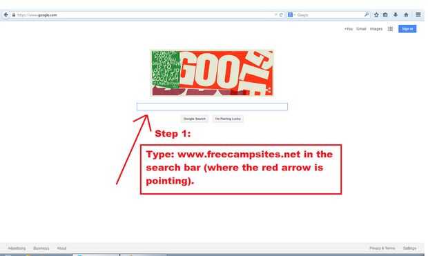 - Tipo de hipervínculo (www.freecampsites.net) en la barra de búsqueda de Google