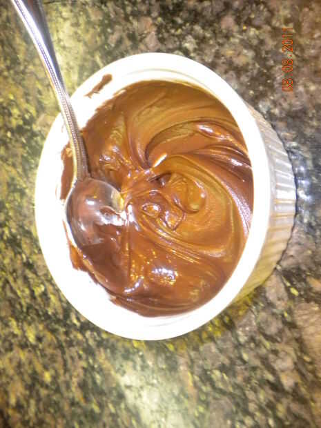 Tomar 1/2 una taza de chocolate chips y ponerlos en un recipiente de microondas seguro. Luego cocinar en el microondas hasta que se derritan. Extendido la bondad chocolate malvavisco derretido en su tarro.