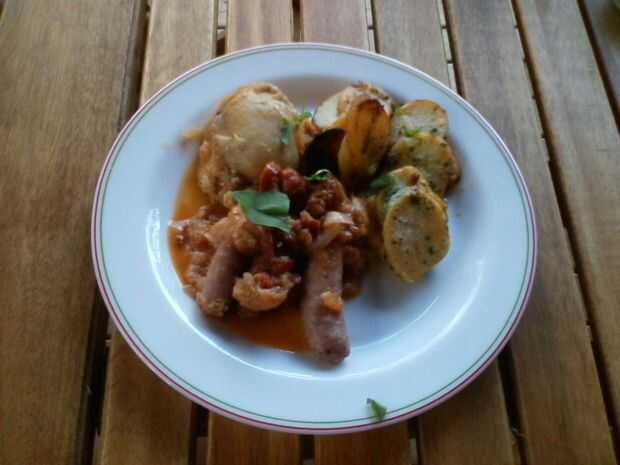 Para cenar por la noche de hoy será una interpretación de camping de cerdo con salsa de manzana.