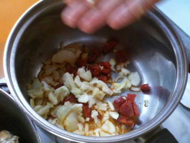 Debido a la falta de acción también he picado hasta algunos embutidos de choritzo y se incluye con la cebolla.