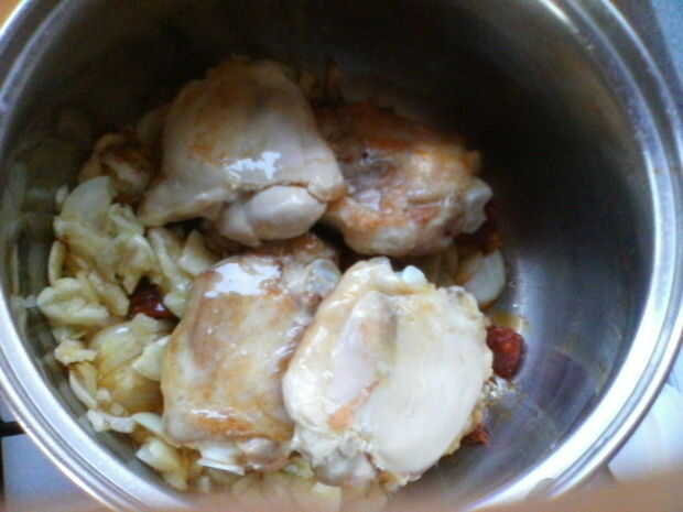 Aquí estoy utilizando los muslos de pollo porque son baratos y creo que más sabrosa que la carne de la mama.