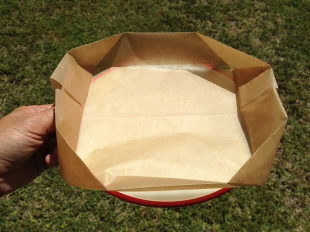 a nadie le gusta platos sucios y a nadie le gusta limpiarlos. Esto es super sencillo. Todo lo que necesitas es papel pergamino y un cuchillo o tijeras. Originalmente había hecho de tazas de té de papiroflexia y origami "placas" (cuencos) con papel de pergamino, pero se dio cuenta de una manera mucho más fácil (si cocina para usted mismo). Esperamos que disfruten esto!