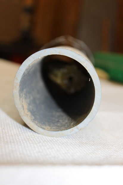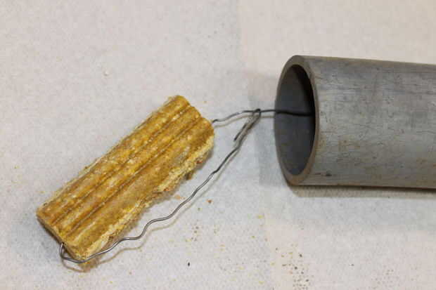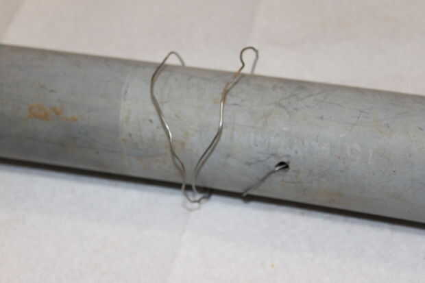 Tire del cable por el agujero perforado y el veneno se deslizará en el tubo y sujetarse de los elementos. Enrolle el cable sobrante alrededor del tubo.