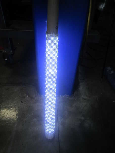 La luz está hecha de una pieza de PVC tubería de 5 metros de tira LED de herida alrededor de él, en su interior contiene 11 ' mini "tamaño C recargables, un casquillo de la pipa sella un extremo, mientras que en el otro la tapa contiene un impermeable en/apagado, la recarga se realiza por 2 puntos en el cuerpo... más se explica... así leer en.