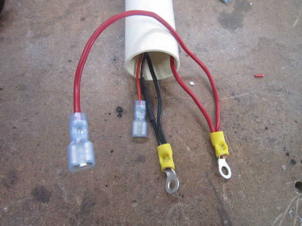 luego prensar un terminal en ambos negativos para que se unen entre sí y un terminal en el positivo de la batería y otro de la encrespadura longitud de cable para llegar al tubo.