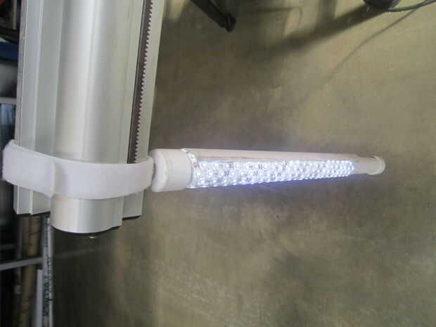 Última foto muestra la luz dentro de una caravana muy oscura, para dar una idea de cuanta luz lanza hacia fuera, Flash fue dado vuelta apagado para la foto. con el protector en su lugar puede obtener una mejor idea de la salida de luz sin que brilla en la cámara.