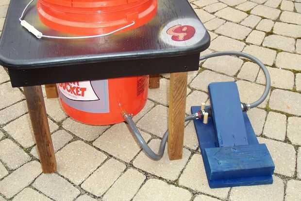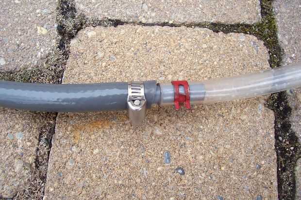 La razón hay dos secciones de la tubería es para que la unidad se puede desmontar para guardar. El alto claro permanece unida a del surtidor como un ajuste de fricción de la tubería. No hay espacio para una pinza dentro del diámetro superior Tubo elevador de la pipa por lo que la conexión que necesiten de servicio se realiza bajo la mesa de ayuda.