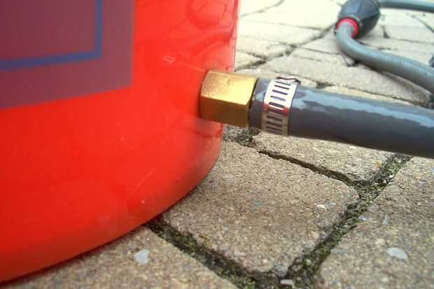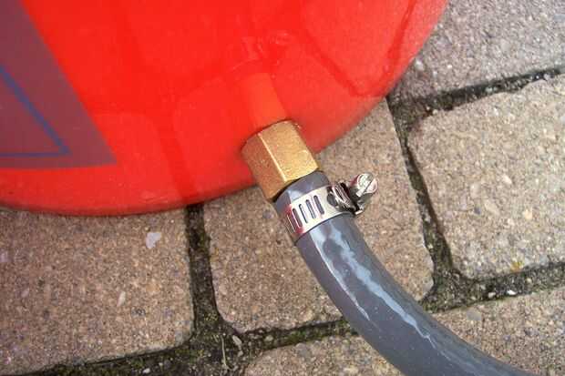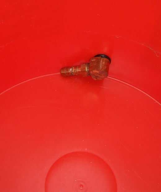 2. desde el exterior de la cubeta, hilo en una hembra de 3/8" de púas de la manguera.