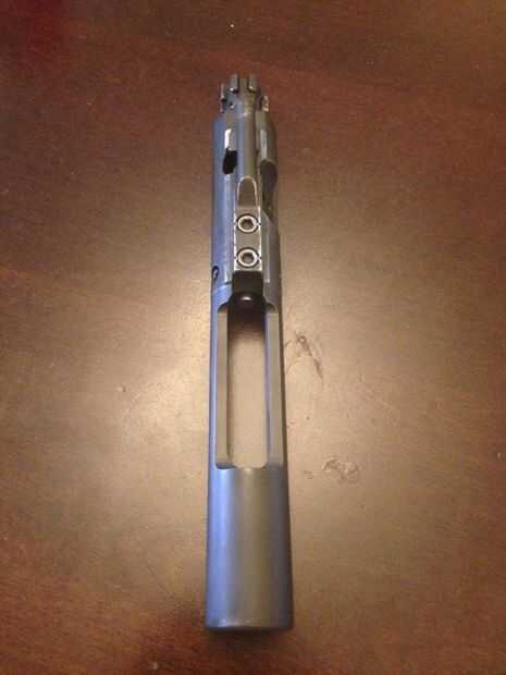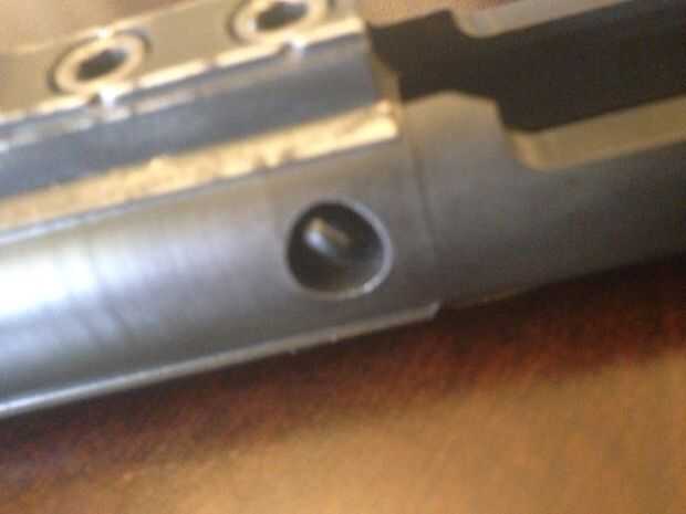 Para iniciar el proceso de desmontaje en el grupo del portador del perno, coloque sobre una superficie plana con el perno hacia fuera. El perno es la sección que está en la forma de una estrella. En el lado izquierdo del perno, hay un perno de la leña conservando pin (es el único en el lado derecho). Quitar el pin. Una vez retirado este perno, el perno de la leña podrá sacar.