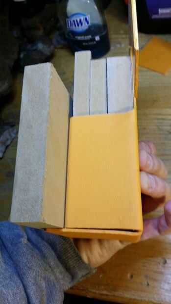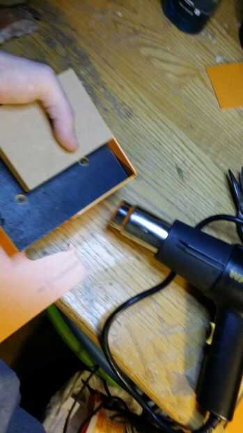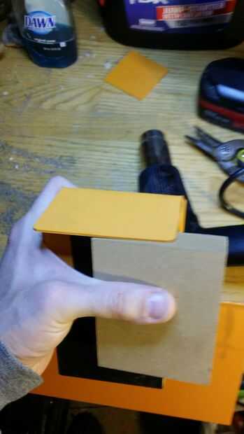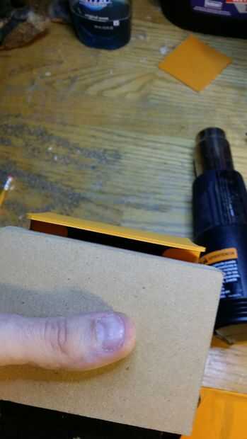 Utilizar un bloque extra de madera y la tabla para mantener las partes planas al formar las esquinas. En las fotos ver que una vez calentado, presione y sostenga el bloque en su lugar hasta que se enfría el Kydex y mantiene la forma. Esto ayuda a mantener los ángulos de un disco duro de 90° y las superficies planas.