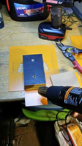 Este bloque de madera también ayuda cubriendo el kydex ya moldeada, mientras calienta la siguiente pieza a curvar.