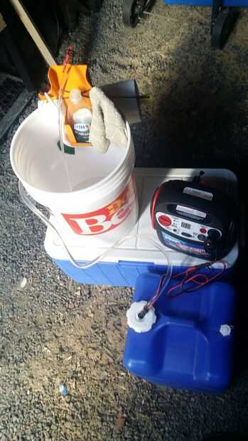 llevar agua a lugares remotos con este pie bomba funcionado estación de lavado. Ideal para campo o el patio. Ideal para fogata o barbacoa parrilla lado comida para limpiar.¿Listo para un horno de duch o competencia de cocinar al aire libre barbacoa a