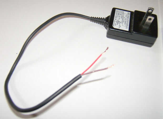 Una vez que ha establecido que hay dos cables debajo de la cubierta negro, córtelo para que usted sólo unos 6" de alambre queda. Tira de los extremos de cada cable. Estas son las conexiones de CC de bajo voltaje. Se conectan a los circuitos de C.C. de baja tensión que desea adjuntar a ellos.