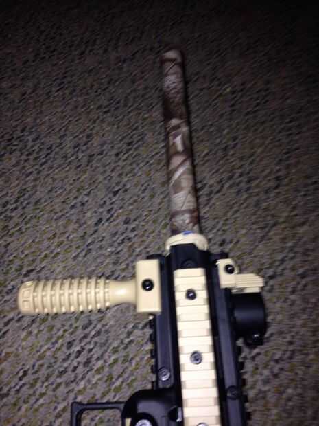 Camuflado Paintball barril usando cinta adhesiva camuflaje