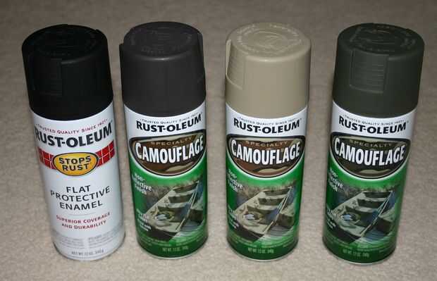 Mate (no brillante) 1 pintura base color, 3 colores de la plantilla (puede usar tantos como quieras, yo usé 3). Utilicé pinturas Rust-oleum: tan, negro, marrón y verde.