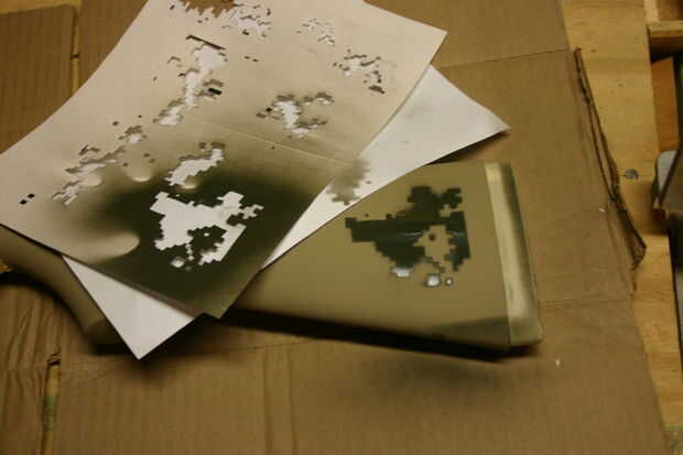Pintura camuflaje patrón de rociado de hace unas semanas me encontré con unos videos de una técnica de con hojas y ramas y quería probar. Tomé el último fotograma de Ikea tenía por ahí y empezamos a rociar. Después de eso, no sabía exactamente qué mo