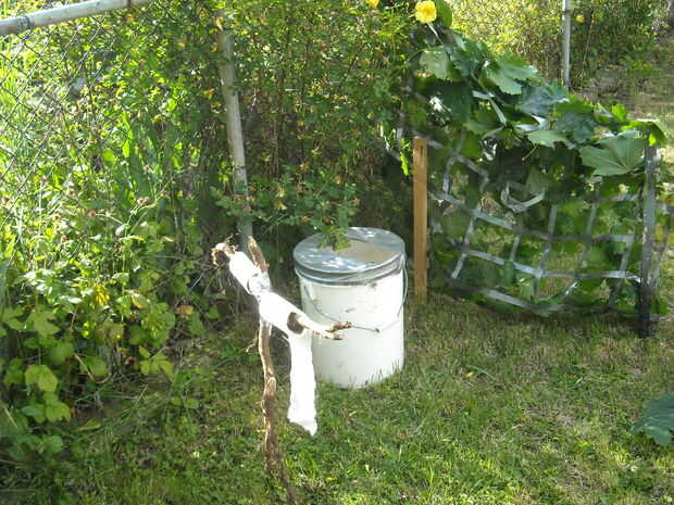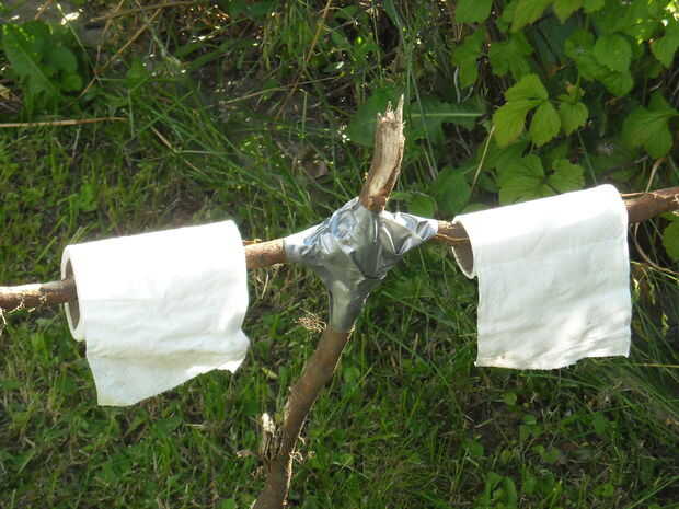 Algunas piezas más de la cinta y le pueden hacer un rollo de papel higiénico y un asiento para su cubo. Ahora tu camping de lujo.
