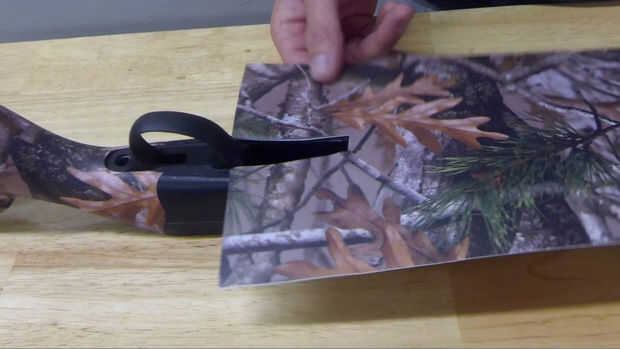 El proceso de peeling, pegar y recortar pueden ser necesarios para cada pieza en el kit de vinilo piel Rifle. Cuando está adecuadamente instalado, el vinilo se crear un sello y apariencia tan apretada y transparente como un trabajo de pintura. La textura y las ranuras del arma mostrará a través de los vinilos, lo que parece como si vino de fabrica con el camuflaje.