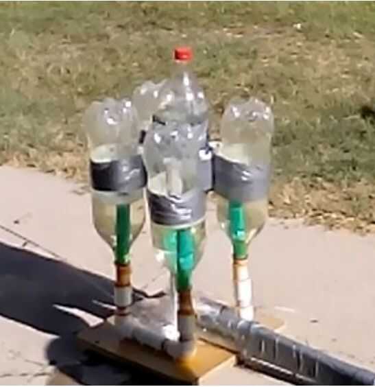 Debido a la falta de recursos ya abandonamos botellas múltiples y etapas múltiples diseños, sin embargo eso no nos impide intentar acercarse a la mejor salida posible con el sistema de la solo-botella. Así que a través de muchos experimentos llegamos a los siguientes resultados que podrían implicar en cualquier 2 litros suave botella de plástico puede usarse como un cohete de agua: