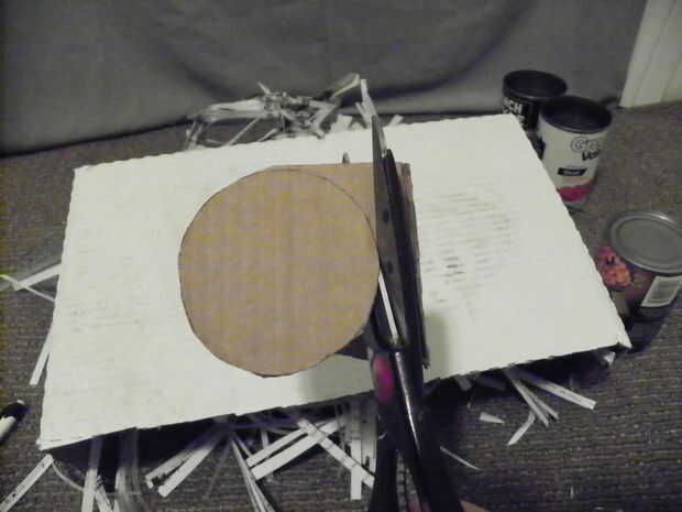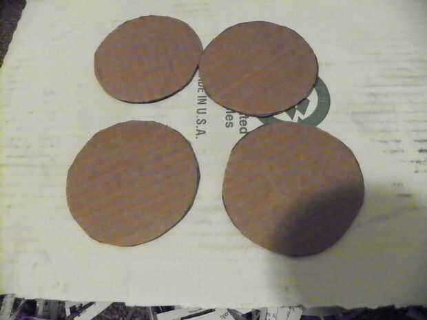 Rastro alrededor de un bote sobre el cartón. Hacer varios círculos. Recorto. se necesita uno para cada lata.