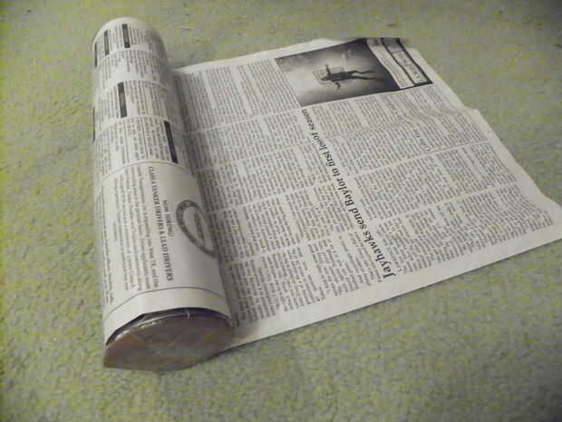 Cubre las columnas con 2 o 3 hojas de periódico. Enrolle firmemente, la cinta o pegamento. Este paso ayuda a reforzar las latas.