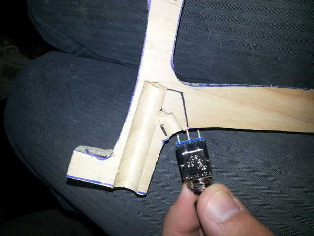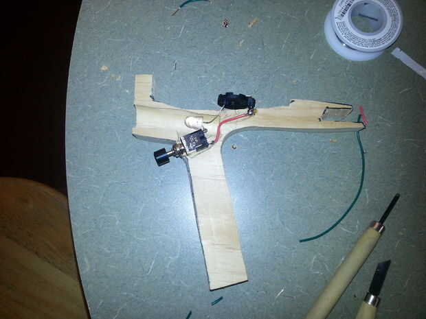Después de que el área ha sido cincelado del phaser junté el cableado.  Mide el área y montado y soldar el conjunto luz hacia arriba y entonces se inserta en el área ahuecado hacia fuera.  Asegurándose de que trabajó antes y después de insertar en el phaser.