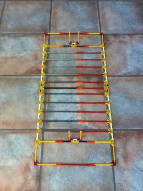es este instructable sobre cómo hacer un campo de fútbol de K'nex. Aquí está la lista de piezas:Barras deGris: 4Rojo: 2Azul: 12Blanco: 8Verde: 23Naranja (flexible): 4ConectoresAmarillo: 14Naranja: 6Rojo: 16Gris claro: 4Blanco: 2El campo completado:Pa