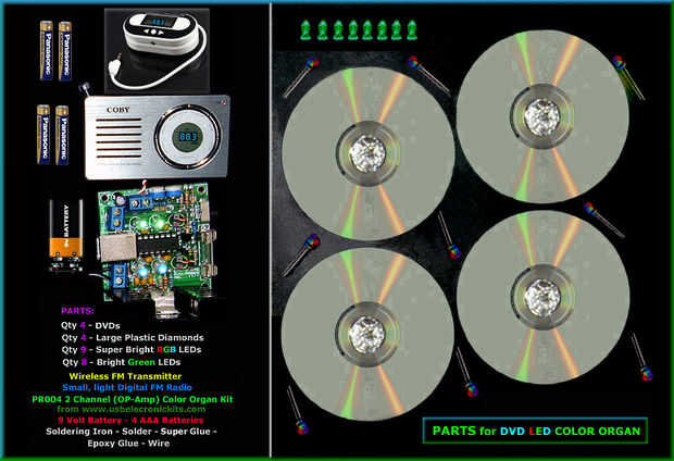 Imagen #6 arriba muestra que todas las piezas necesitan para construir este DVD LED COLOR órgano.