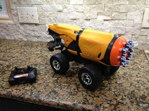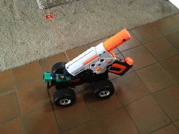 EDIT #2: (28/05/13) recientemente hice otro proyecto y Instructable muy similar a este. Había montado una ametralladora Airsoft en la parte superior de un coche RC! Aquí está el enlace para ver un completo video tutorial para hacerlo: