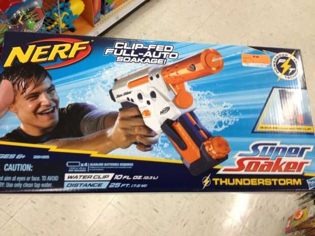 - Pilas Nerf pistola, pistola de agua o cualquier otra cosa con un pequeño motor de corriente continua en ella que desea activar remotamente. Me las arreglé para conseguir esta belleza (la Nerf Swarmfire) en venta por sólo $15! También encontré esta pistola (la Super Soaker tormenta) por $15 también.