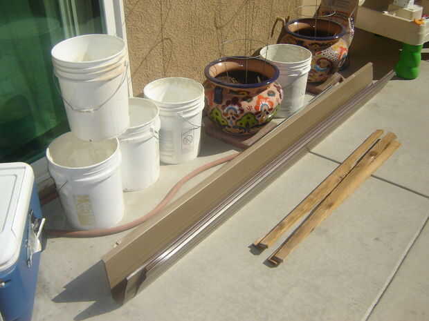 El resto de los materiales realmente depende de cómo vas a montar, colgar o colocar las macetas a una estructura de apoyo. Usé algunos viejos trozos de cartón, madera, pvc, abrazaderas de conducto para crear las piernas para mi tres jardineras.