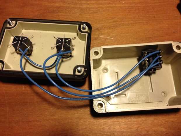 El cableado aquí es simple. Los contactos de un interruptor ir a los terminales del manguito y anillo de la roseta, y los contactos sobre el otro interruptor ir a los terminales de la manga y punta en el conector. Eso es todo!