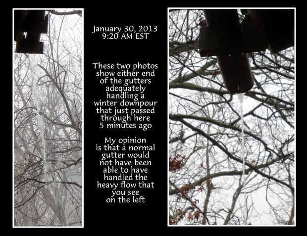 5) resultado: el canal nunca recorre, acogerá un aguacero, nunca paradas para arriba y permite la limpieza sin el uso de una escalera. Los soportes de 2 "x 8" son lo suficientemente fuertes como para permitir que el canal llenar con hielo en el invierno y no romper.