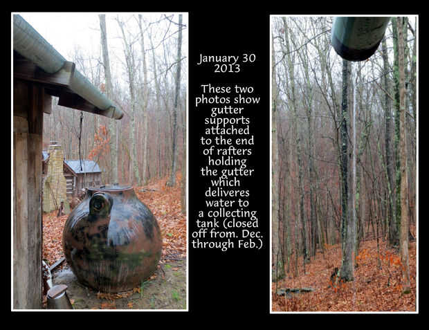 Un) edificio con vigas expuestas: (3ª foto) hice soportes de canal de 2' las secciones largas de madera de 2 "x 8" Tratado cortando una abertura de forma de media luna para acomodar el tubo S & D en un extremo sesgo ligeramente para adaptarse a la inclinación de la cubierta así que el canal sentaría a nivel en su cuna. He dejado 1" en el exterior de la ayuda más allá de la abertura para hacerla más fuerte en ese momento. Entonces me llamó la atención una línea de tiza a lo largo del borde de las vigas del techo que se inclina hacia el extremo (al menos 1/4" por 10 'es la recomendación pero yo uso 1/2" por 10' run o 1" cada 20'). Luego os adjunto los soportes a los lados de las vigas del techo de la dependencia con dos tirafondos. Entonces tenía un amigo en otra escala me ayuda a caminar el canal al borde de la azotea y poner en su lugar dentro de los soportes. Borde interior de la cuneta debe sobresalir aproximadamente una pulgada debajo de la línea del tejado para recoger el goteo desde el borde del techo. Utilizar este canal para recoger agua de lluvia en un tanque de 300 galones que uso: llenar una 55 gal. tambor para suministrar una ducha al aire libre de verano; para llenar mi bañera de hidromasaje y para llenar un segundo tanque en mi cabina donde utilizo una bomba manual para sacar el agua - útil cuando la electricidad está apagada.