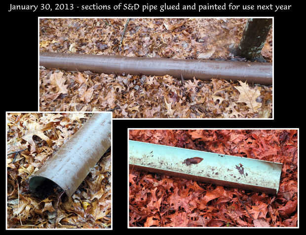 1) que el canal de: viven en el bosque donde hojas y ramas obstruyen canales de la lluvia me hizo probar (y no un par de veces) para descubrir una solución al problema. Por último, me encontré con la idea de utilizar 10 secciones de pared S & D tubo delgado pegado como un sustituto para el canalón de aluminio sin fin común que es demasiado pequeño para dar cabida a las fuertes lluvias y casi imposible de limpiar, porque los soportes van en la parte superior del canal. Utilizando cemento para PVC, pegué 2-10' secciones de 6" S y tubo D juntos, entonces pulsó dos líneas a lo largo de los lados utilizando una línea de tiza, cortan el tubo por la mitad con una fina dentada sierra circular a muy poca profundidad para no para romper el tubo que me dio dos 20' secciones de tubería. Luego, pegué estas dos secciones usando alicates Vice para mantener seguro el pegamento podría hacer su trabajo. Después de que las secciones estaban pegadas firmemente apretados, quité las pinzas y luego pinté el tubo S & D en el exterior con pintura de casa.